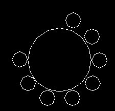 11、畫出第10個凳子,一個10人坐的大圓桌的簡單平面圖就完成了: