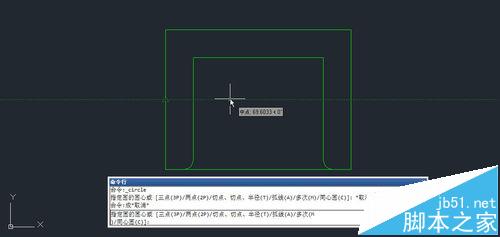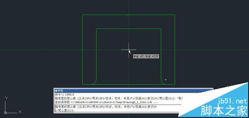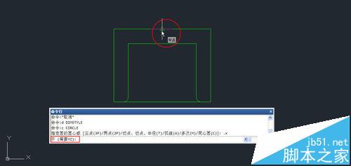 1、在上面提供的經驗引用中已經有詳細的操作步驟,這里就簡單的講一下。輸入C回車,執行畫圓的命令,輸入.x,捕捉頂部直線的中點,如下圖所示。