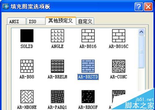 3、在彈出的【填充圖案選項板】窗口上選取圖案,有很多預設的,我這里想填充圍墻,那就選取如下圖案。