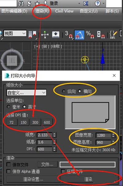 1、獲得高分辨圖片,菜單欄-渲染-打印大小助手-設(shè)置分辨率和大小。