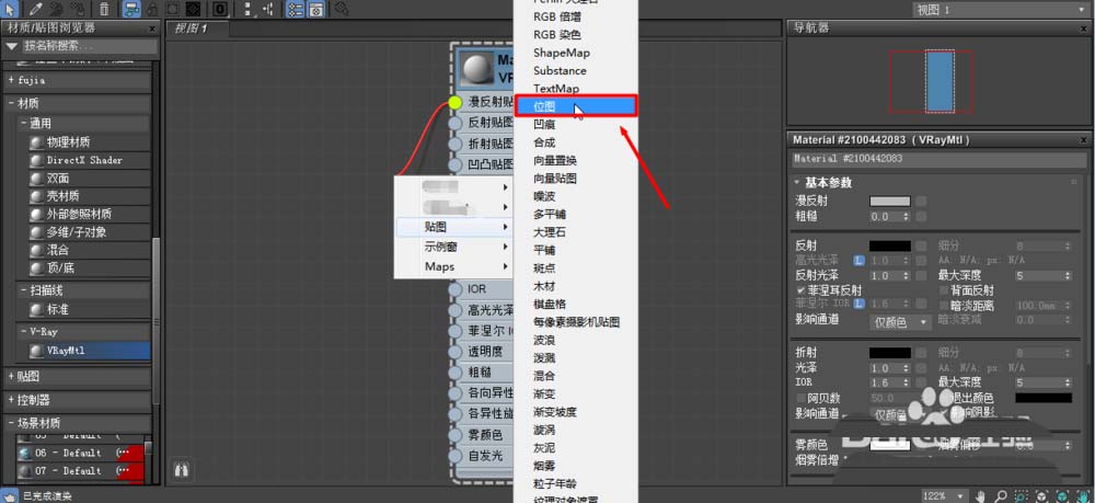 6、那么如何在材質(zhì)編輯面板中添加貼圖呢。點(diǎn)擊材質(zhì)左側(cè)圓形按鈕(接入端)并拖動(dòng),就會(huì)彈出貼圖選擇,我們找到位圖就可以啦。同理可以進(jìn)行其他的材質(zhì)制作。如圖所示