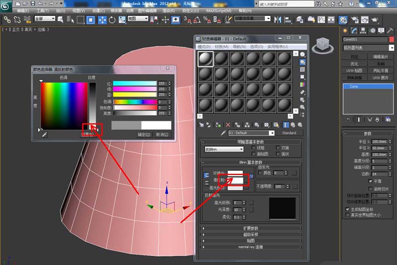 2、選中圓臺模型,點擊【修改】對圓臺各個參數進行設置;