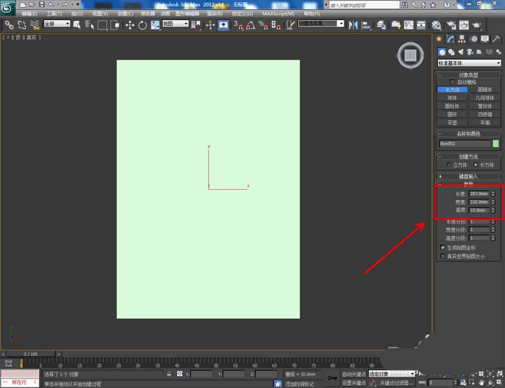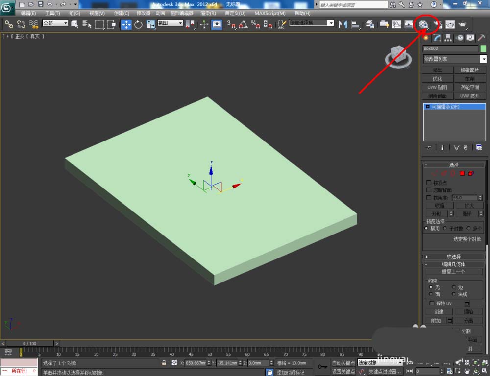1、打開3Dmax2012軟件,點擊【創建】-【幾何體】-【長方體】,在作圖區域繪制一個長方體模型并按圖示設置好長方體的各個參數。完成后,點擊鼠標右鍵-【轉換為可編輯多邊形】;