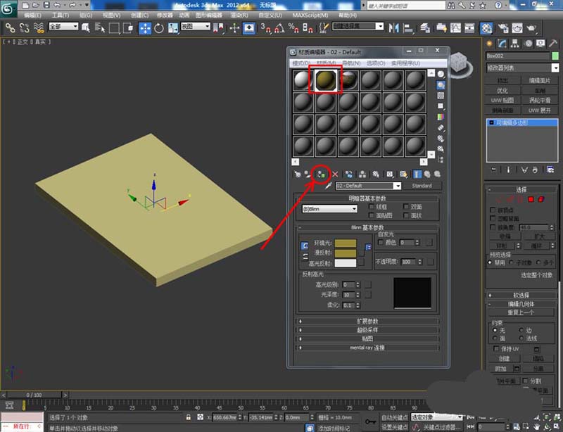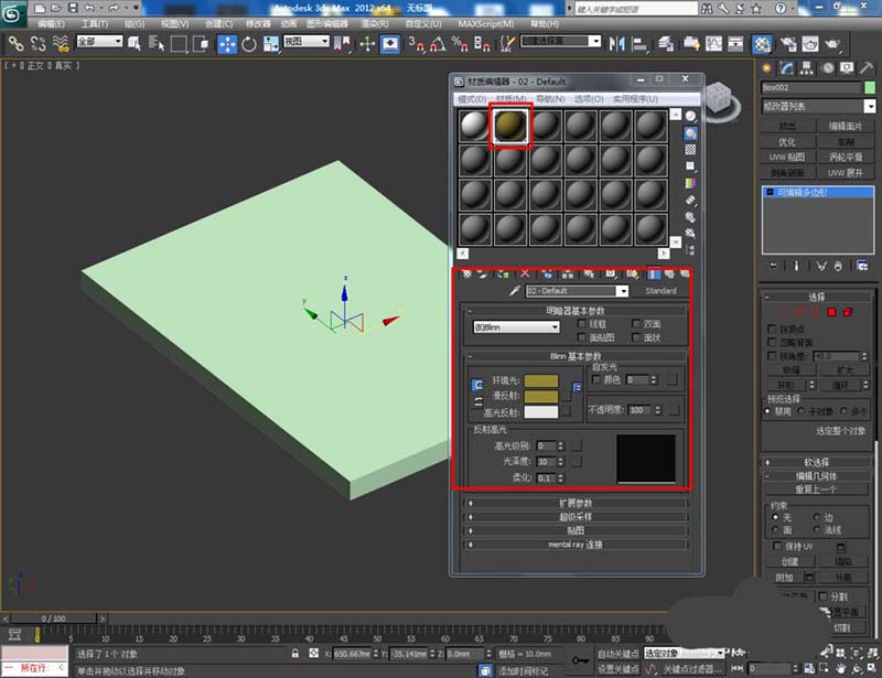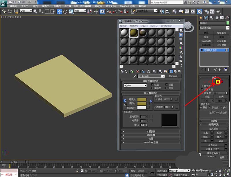 3、選中模型,將墨綠色材質球附加給模型后,點擊右邊工作區中的【面】圖標,按圖示對選面進行材質附加(如圖所示);