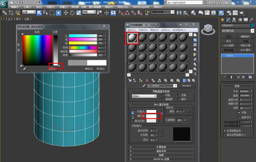 3、點擊【材質編輯器】,按圖示設置一個白色材質球;