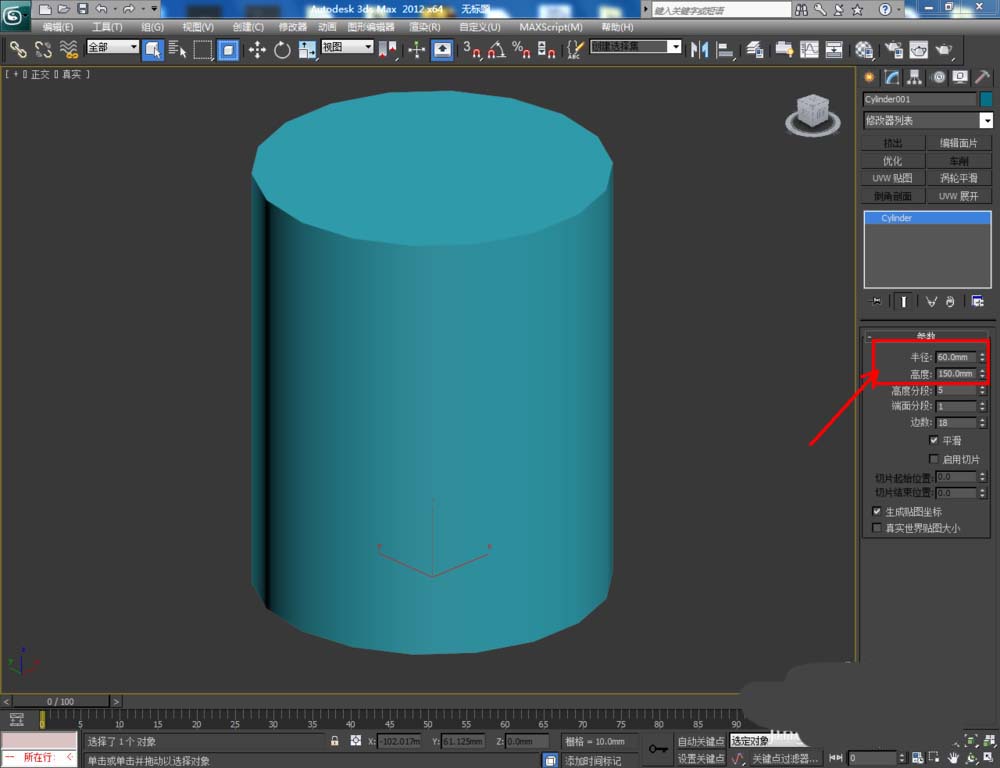 2、選中長方體,點擊【修改】對圓柱體各個參數進行設置;