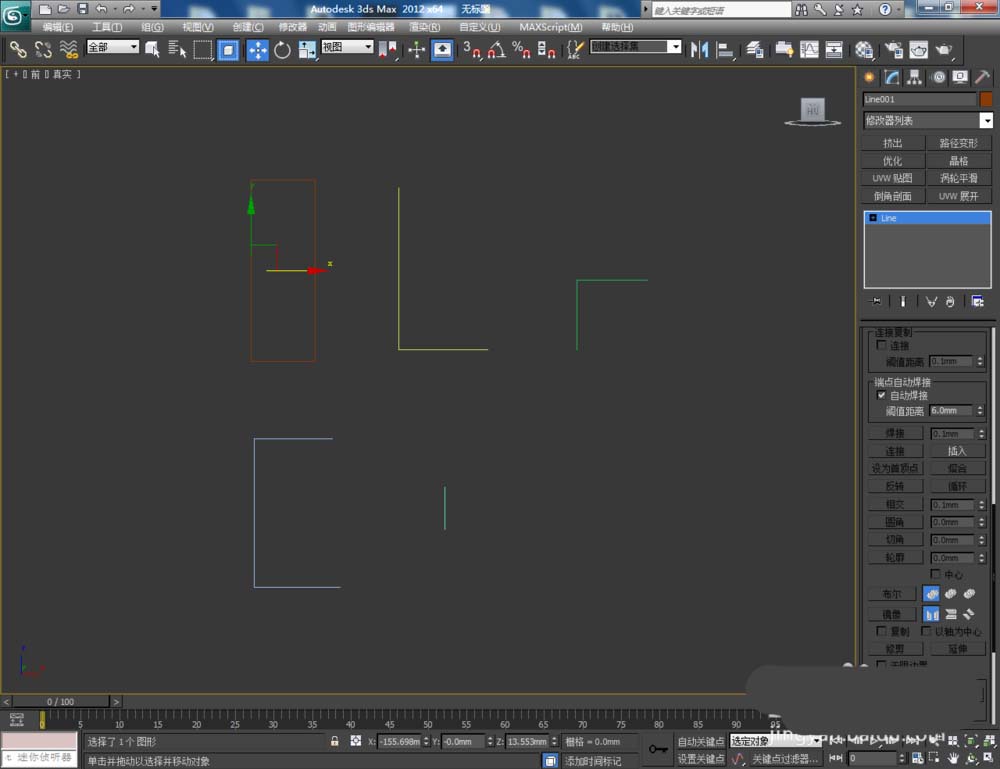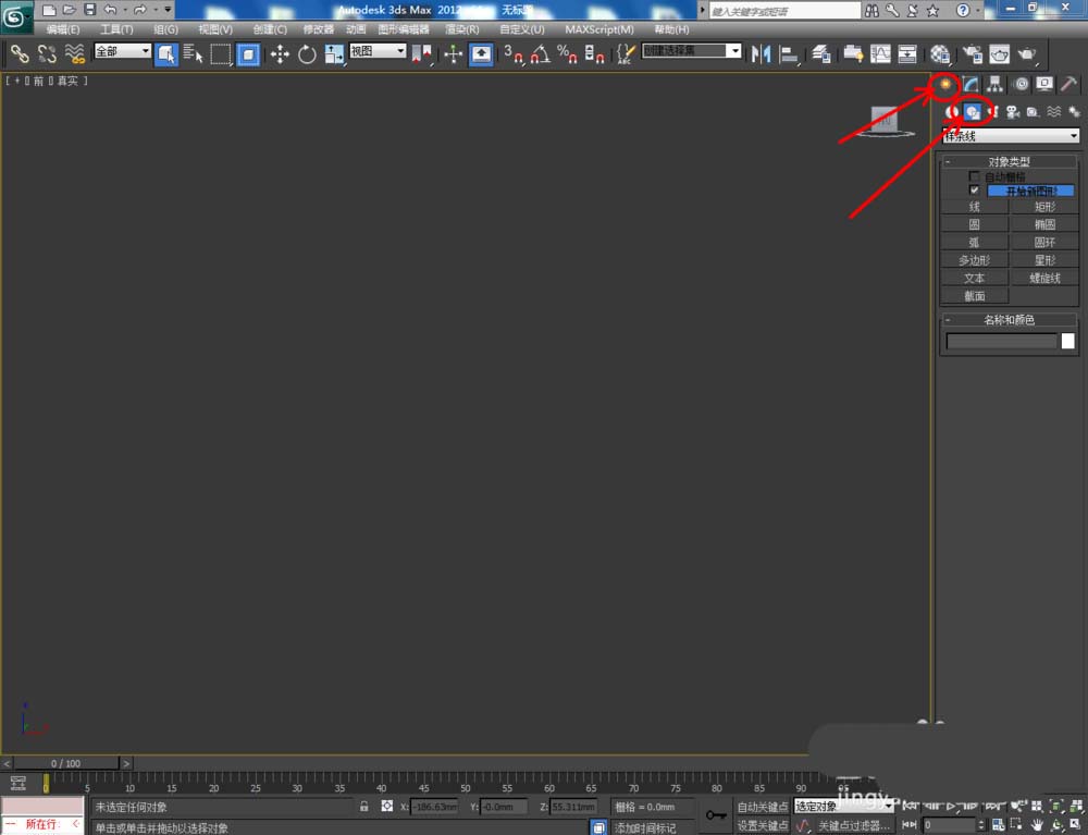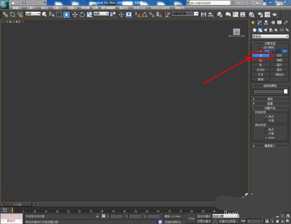 1、打開3Dmax2012軟件,點擊【創建】-【圖形】-【線】,按圖示在作圖區域繪制多個線段圖案(如圖所示);
