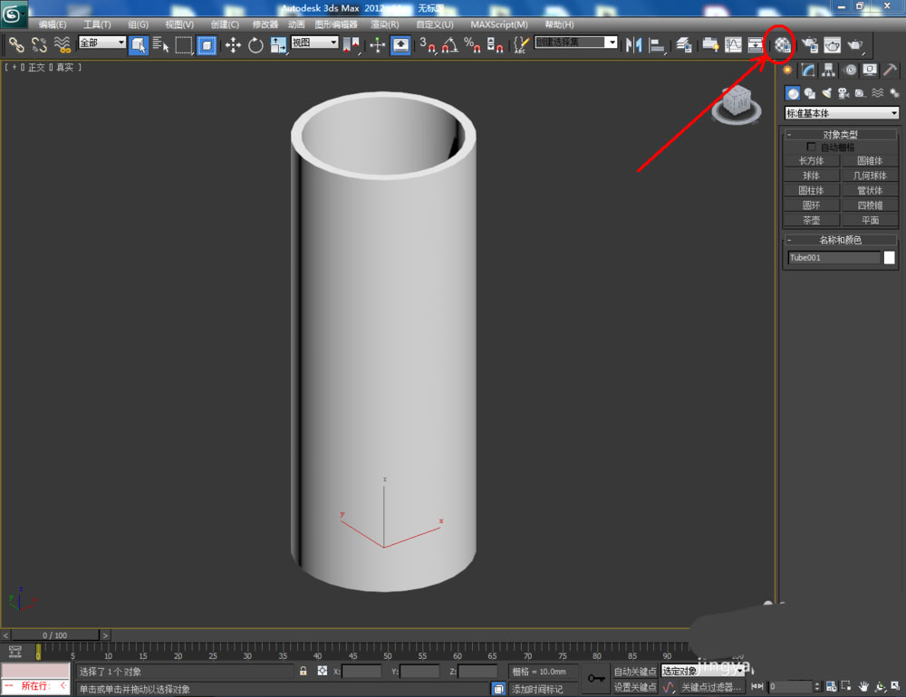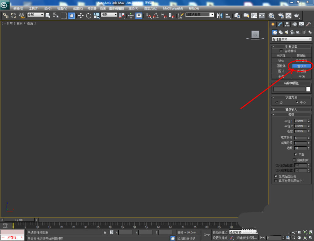 1、打開3Dmax2012軟件,點擊【創建】-【幾何體】-【標準基本體】-【管狀體】,在作圖區域繪制一個管狀體模型并根據需要設置好模型的各個參數;