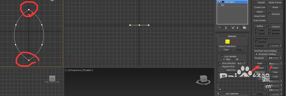 4、兩個尾部選擇焊接命令,調數值 合并成一個點
