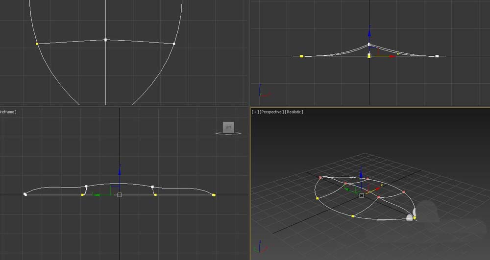 6、在左視圖,畫一個樹葉的輪廓。記得合并