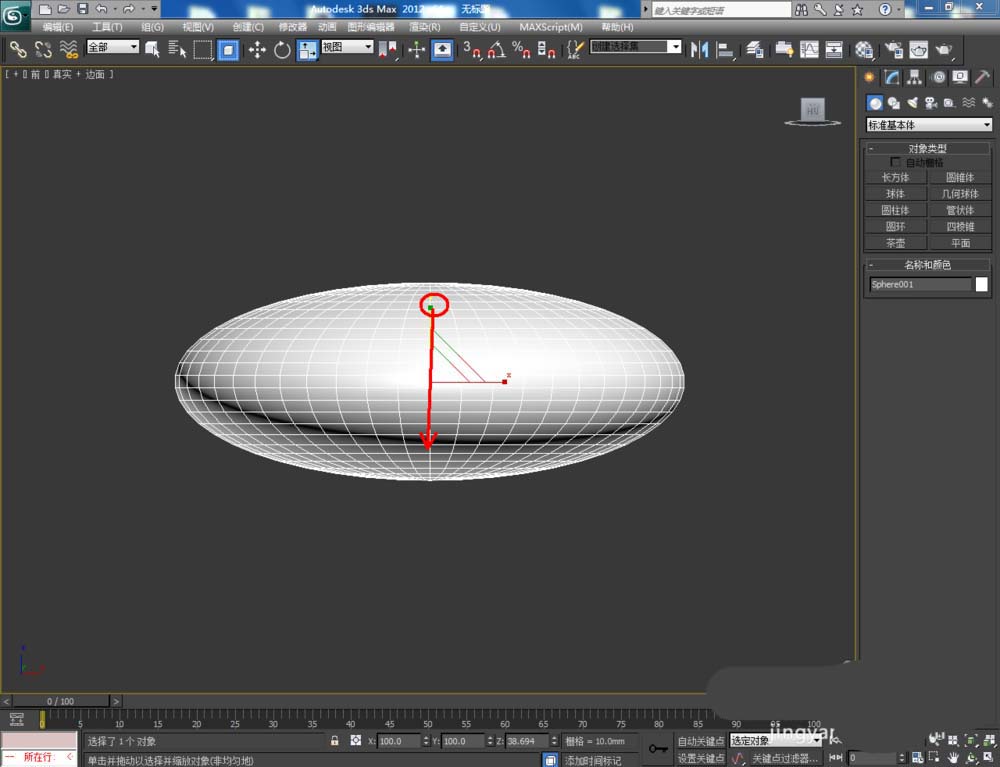 1、打開3Dmax2012軟件,點(diǎn)擊【創(chuàng)建】-【幾何體】-【球體】,在作圖區(qū)域繪制一個(gè)球體模型。選中模型,點(diǎn)擊【對(duì)象顏色】將模型的對(duì)象顏色設(shè)置為:白色;