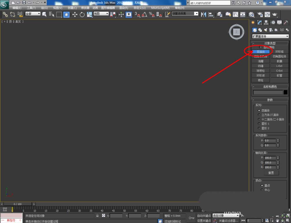 1、打開3Dmax2012軟件,點擊【創建】-【幾何體】-【擴展基本體】-【異面體】,使用異面體工具制作出一個星形寶石模型;