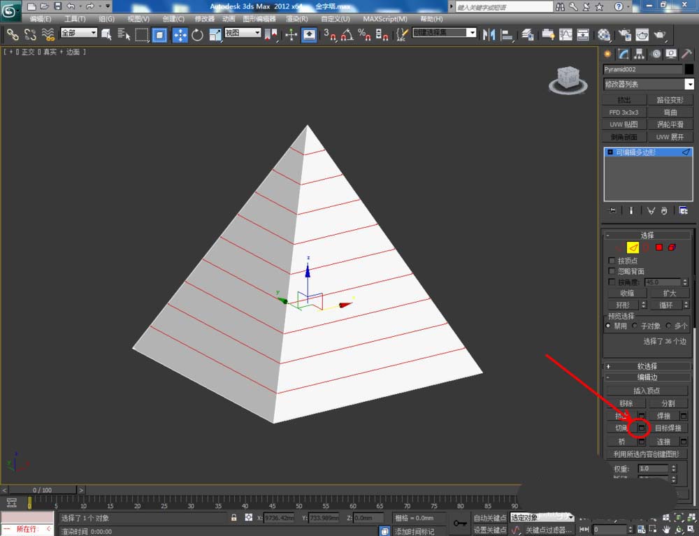 1、打開3Dmax2012軟件,點擊【創建】-【幾何體】-【標準基本體】-【四棱錐】,在作圖區域繪制一個四棱錐模型并按圖示設置好模型的各個參數;