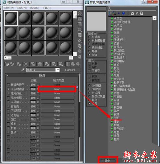 4、找到“貼圖”,點(diǎn)擊“貼圖”—勾選“漫反射顏色”—點(diǎn)擊“none”—打開“材質(zhì)/貼圖瀏覽器”—選擇“位圖”—點(diǎn)擊“確定”—選中一張你要貼圖的圖片—點(diǎn)擊“打開”