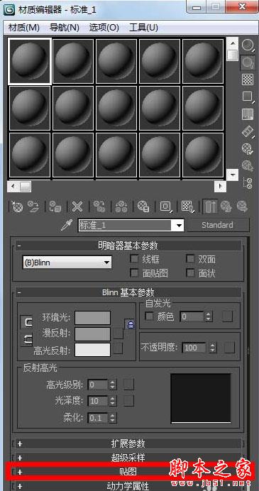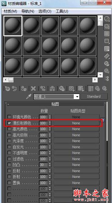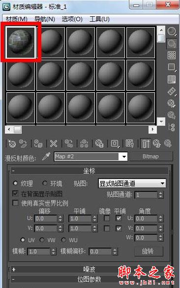 3、打開“材質(zhì)編輯器”,選中第一顆材質(zhì)球,快捷鍵是m