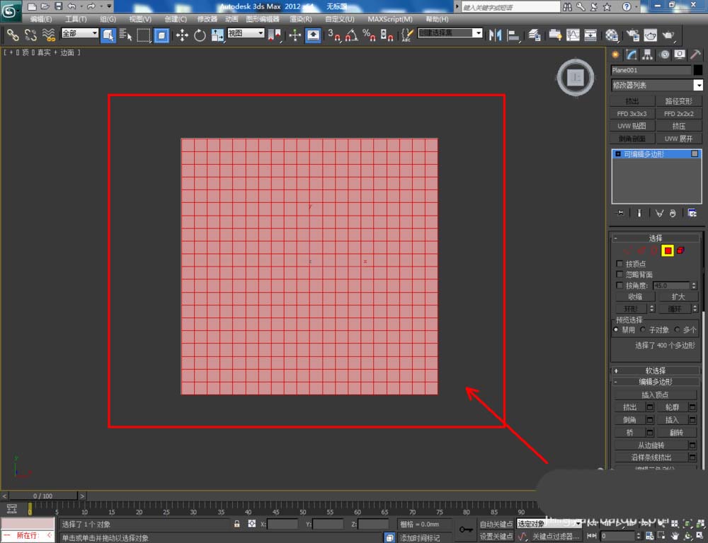 1、打開3Dmax2012軟件,點擊【創(chuàng)建】-【幾何體】-【標(biāo)準(zhǔn)基本體】-【平面】,在作圖區(qū)域繪制一個平面模型,并按圖示設(shè)置好平面模型的各個參數(shù);