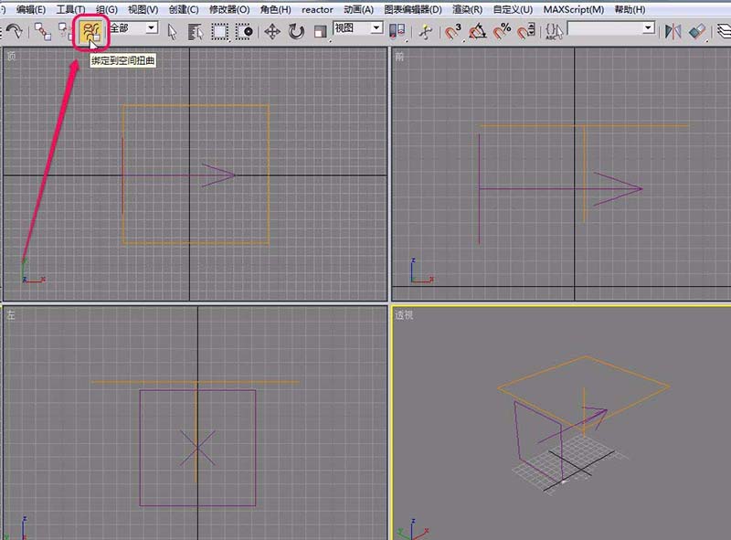 8、選擇工具欄中的“綁定到空間扭曲”按鈕。