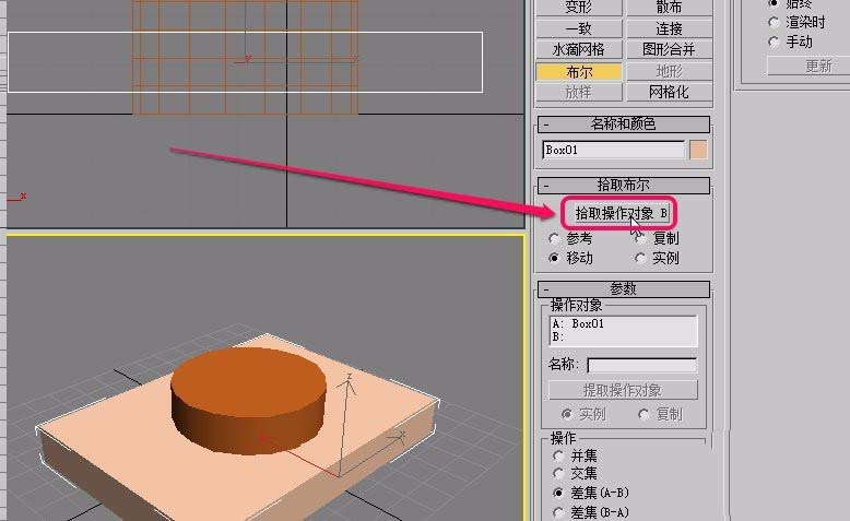 8、單擊選擇“拾取操作對象 B”按鈕。