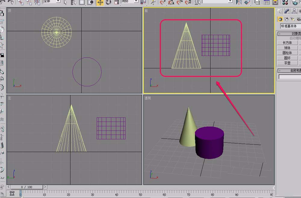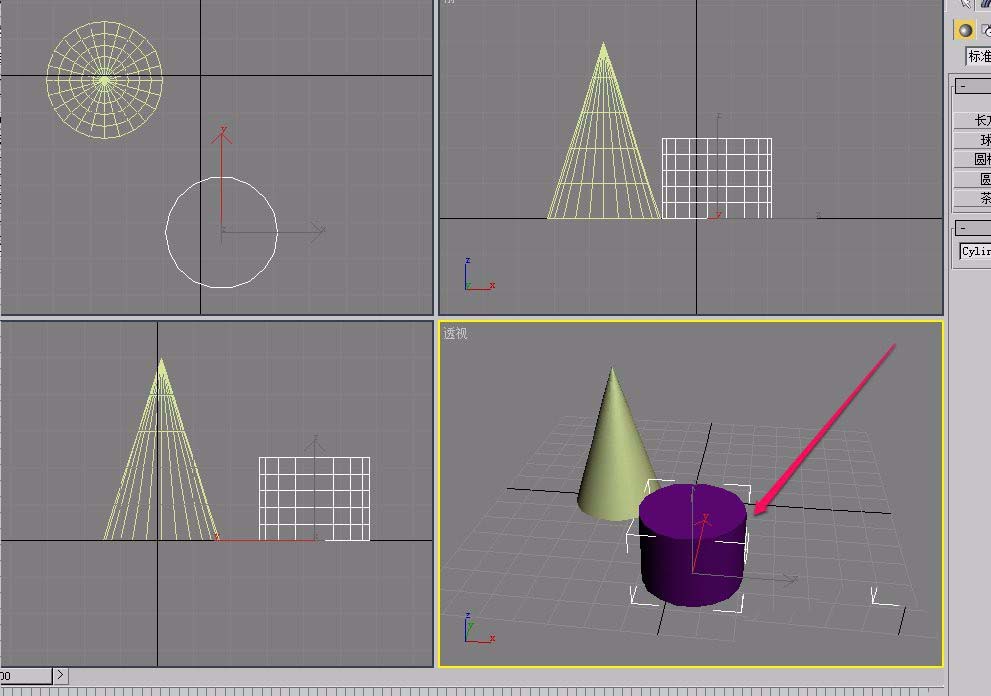 1、打開3ds max軟件,新建一個圓柱體和一個圓錐體。