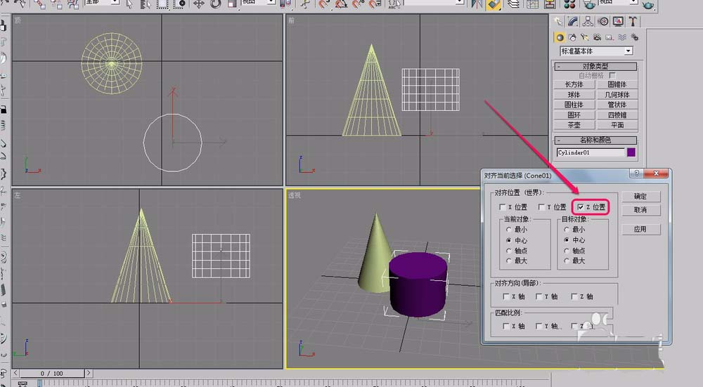 6、我們選擇在z軸數值上的對齊,于是選擇“對齊位置”中的“Z位置”。