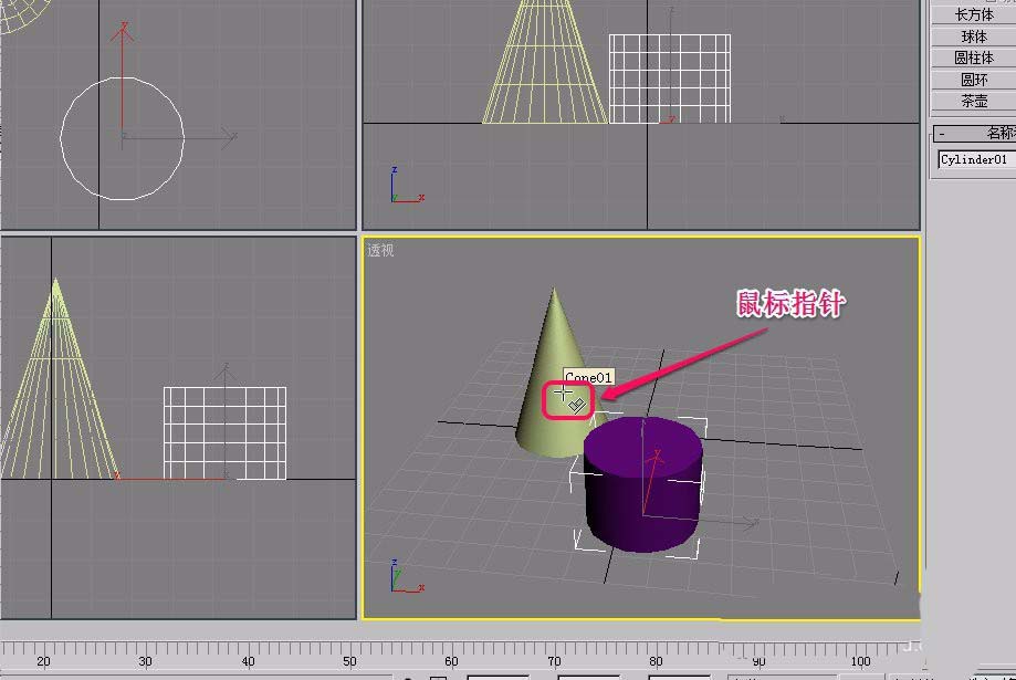 4、移動鼠標指針到圓錐體上面。當鼠標指針變成圖示的形狀后,單擊鼠標。