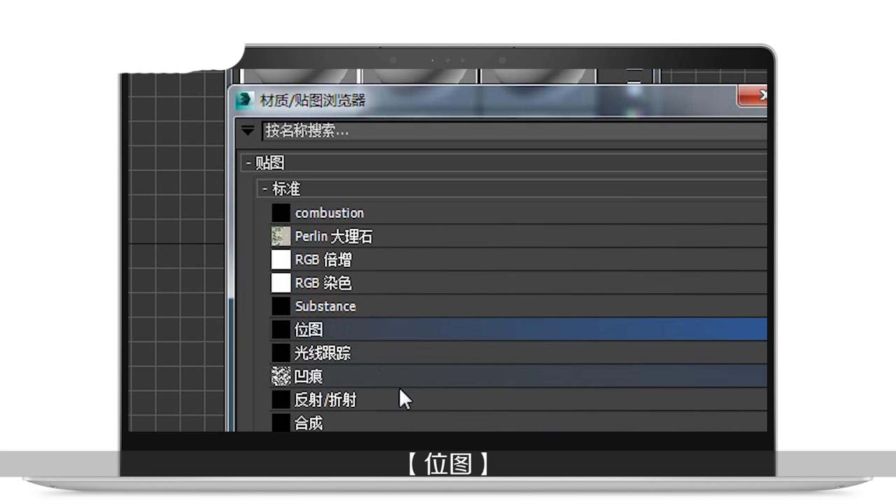 5、為了更能說明材質效果,我們依次點擊“貼圖”、“反射”、“位圖”,然后點擊“確定”,接著選中已經準備好的圖片,點擊“打開”。