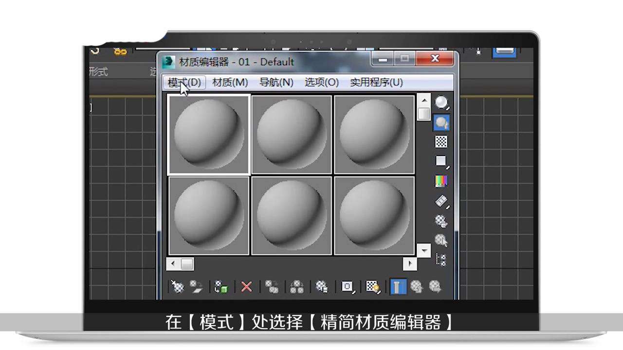 3、按住快捷鍵M,調出“材質編輯器”窗口,在“模式”處選擇“精簡材質編輯器”。