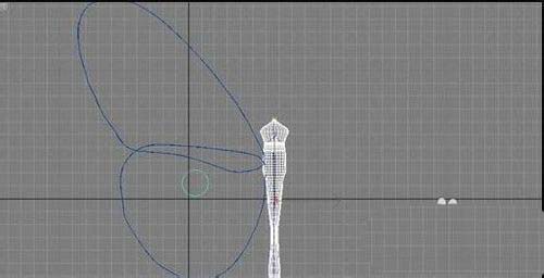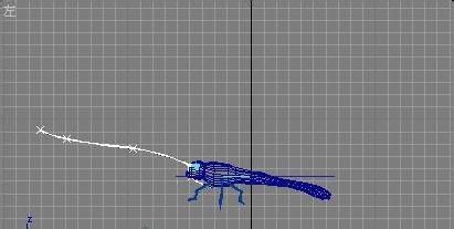 使用“編輯網擱”工具對各層頂點進行初步的編輯,制作出分節的效果;切換到頂視圖,選擇“編輯”“克隆”命令,將復制方式選為“復制”,進行復制,使用移動、旋轉工具移動到合適的位置。通過這種方法得到另外兩只腿,使用“編輯網格”工具對復制出來的腿的頂點進行編輯,使其形狀發生少許改變;單擊“圖形”按鈕進入二維形體創建面板,單擊“線”按鈕,在視圖中根據背景圖繪制一條曲線作為蝴蝶的觸須,如圖10所示。