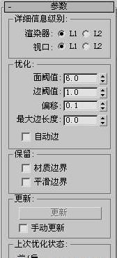 根據背景繪制兩條邊緣曲線,注意使用曲線封閉;在二維形體創建面板的下拉列表框中選擇“樣條線”,創建一條直線和一個圓,并使用“放樣”工具進行放樣,在直線路徑的不同位置獲取截面圓。進入修改命令面板,進入“圖形”次物體層級,依次在視圖中選擇路徑上各截面,使用“選擇并均勻縮放”工具進行縮放;進入修改命令面板,在“修改器列表”下拉列表框中選擇“優化”工具進行優化。