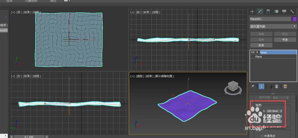 3、通過修改強(qiáng)度下的參數(shù),可以在X、Y、Z軸可以施加一個(gè)壓力。值越大,水面起伏越大。