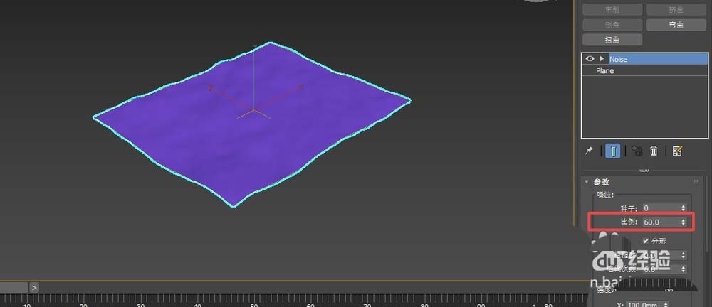 4、通過修改比例值可以調(diào)整波長(zhǎng),默認(rèn)值是100,值越大,水面波長(zhǎng)越長(zhǎng),顯得就越平緩一些。