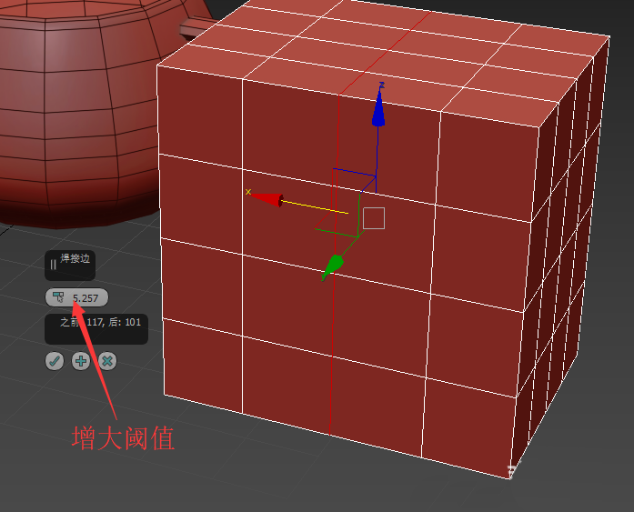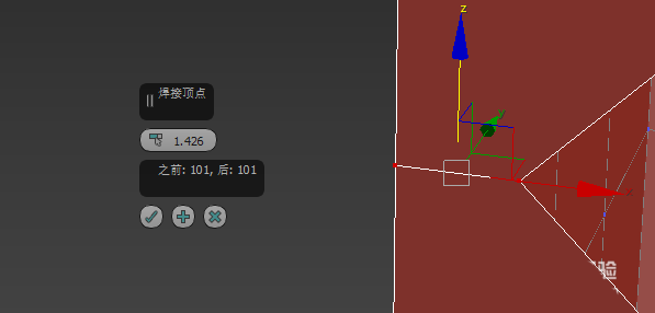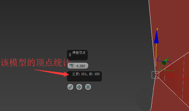 3、逐漸增大焊接閾值。所有距離低于這個(gè)閾值的頂點(diǎn)會(huì)合并為1個(gè)。旁邊有模型的頂點(diǎn)統(tǒng)計(jì),我們可以確定焊接了幾個(gè)頂點(diǎn)。