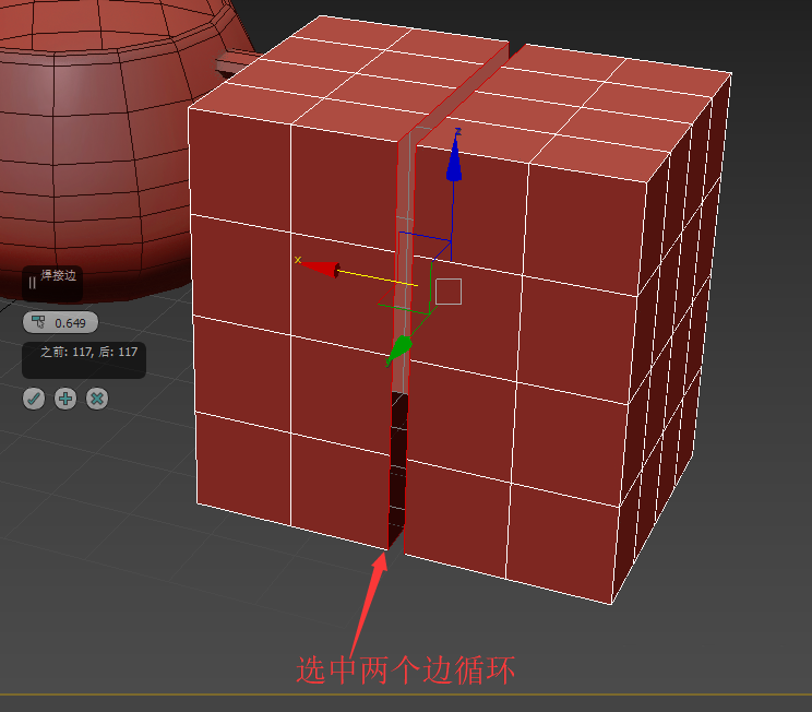 6、目標(biāo)按鈕也可以在邊層級(jí)使用,把一條邊合并到另外一條上。效果如圖。