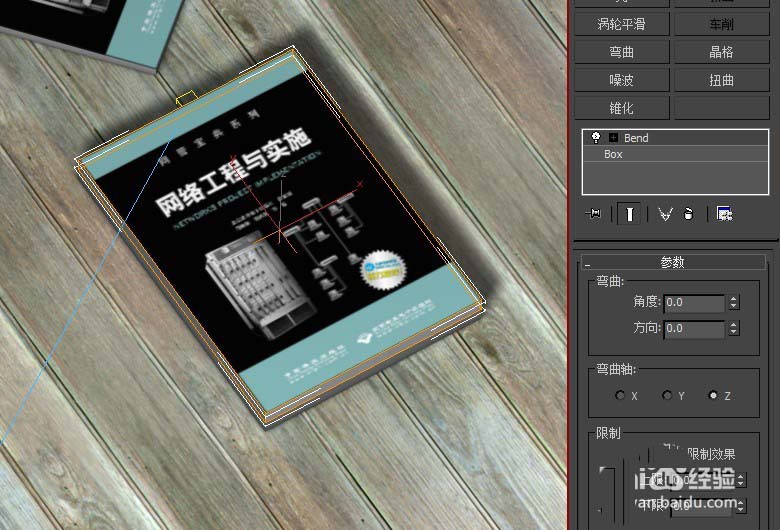 1、打開題目指定的路徑素材文件;選擇對象書本(Box02),給予添加一個“彎曲”修改器,參數不用去動它;