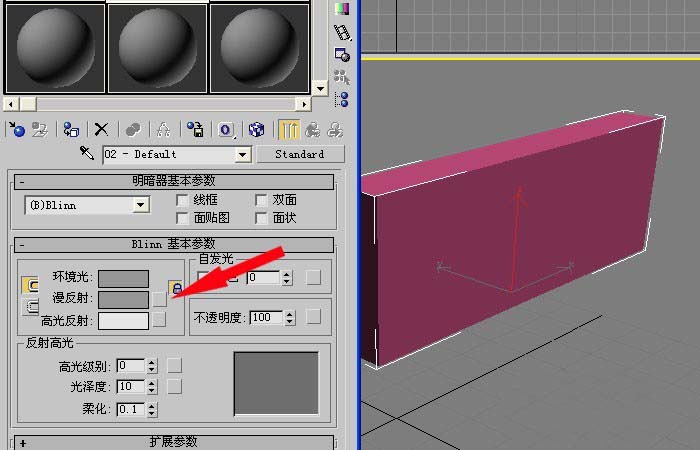 2、接著,鼠標(biāo)左鍵選擇菜單【渲染】>>【材質(zhì)編輯器】單擊一下,在打開的材質(zhì)編輯器窗口上,選擇一個(gè)材質(zhì)球體后,單擊【漫反射】,如下圖所示。