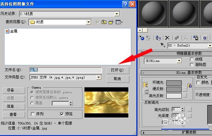 4、接著,在圖片選擇文件窗口上,選擇一個(gè)材質(zhì)的圖片,比如這里選擇了一個(gè)金屬的圖片,如下圖所示。