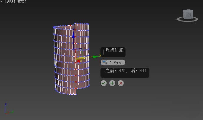 3、擠出后給予轉化成“可編輯多邊形”,優化一些細節;把圈數的連接處的點進行有效焊接;隨后選擇線段,利用循環把螺旋線選擇起來,注意頭尾部分不要選;如下圖;