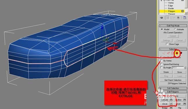 9、選擇這些面進行往里擠壓,可以用到BEVEL和EXTRUDE操作。