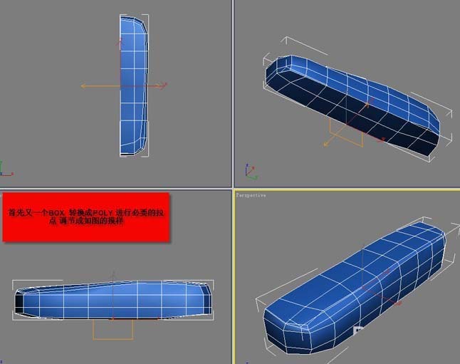 1、首先建立一個BOX,并轉換成POLY,再進行必要的拉點,調節成如圖的模樣。