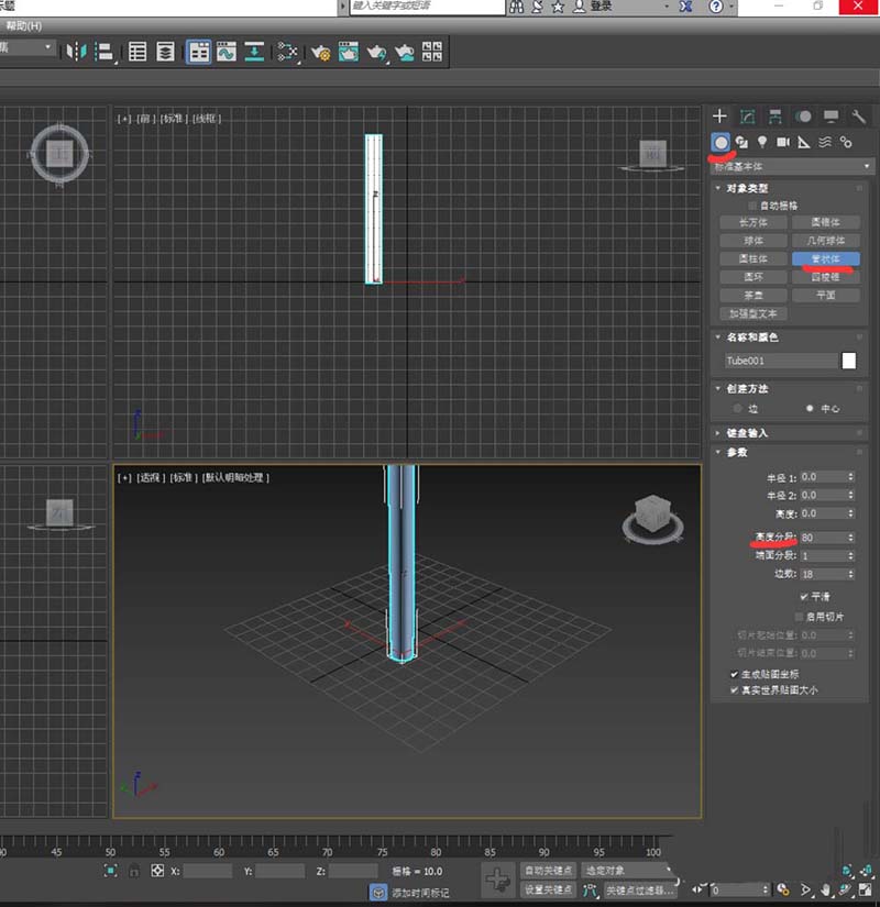 2、選擇標準基本體-管狀體。在透視圖隨意畫一個管狀,高度分段為80。