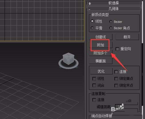 9、點擊附加之后再在修改找到樣條線選項,然后再在樣條線里我們找到修剪選項,如圖所示: