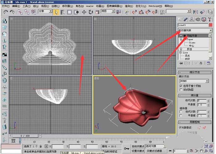 6、在修改器列表中單擊網格平滑,設置好參數。