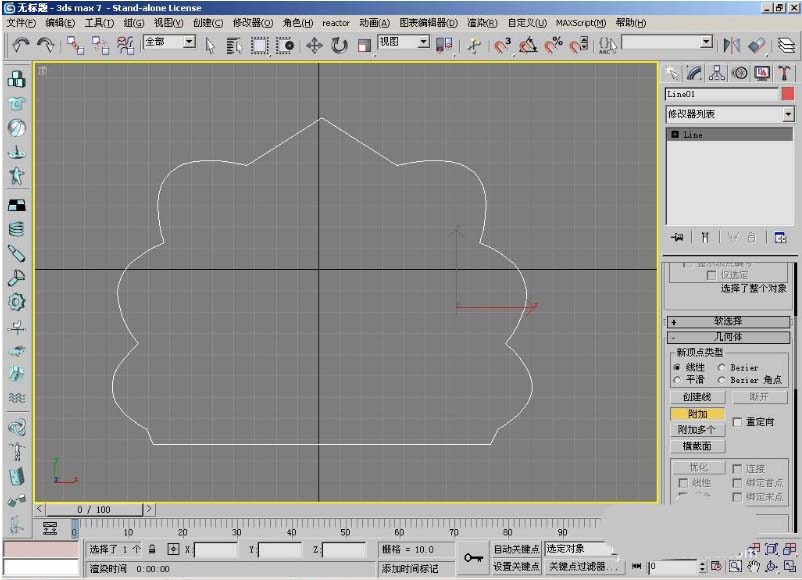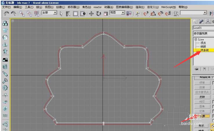2、在修改器列表中單擊頂點,創建線形,并修改線形為圓弧狀。