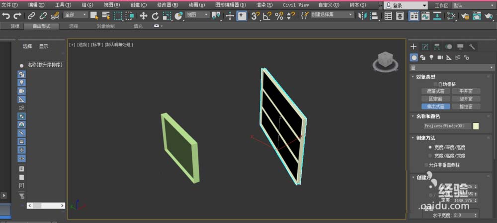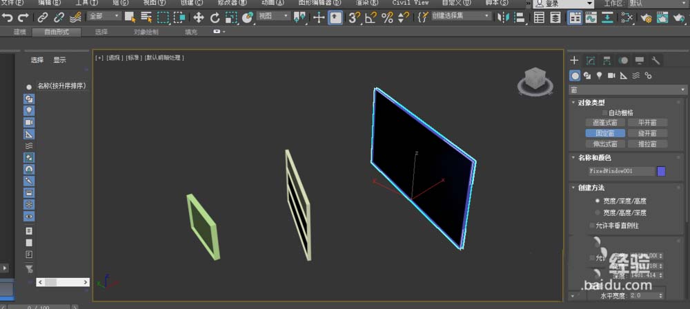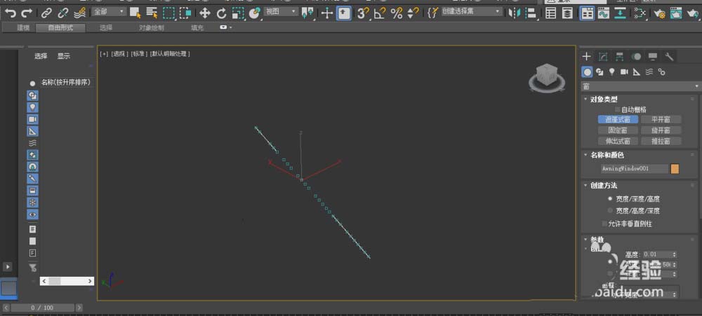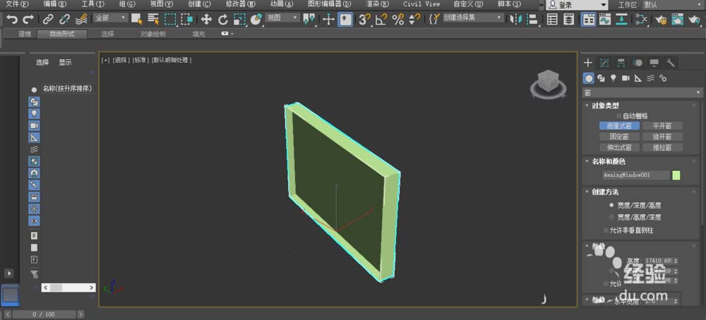 5、選擇其中的一個窗,然后在左邊的空白處點擊鼠標左鍵,進行長度,寬度,高度的一系列設定,這樣就會出現這個遮蓬式窗