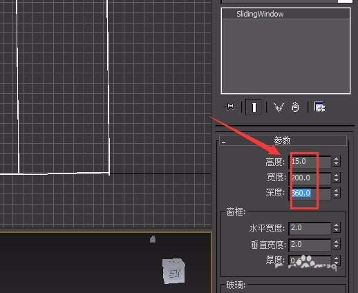 5、選擇創建的推拉窗,在修改里設置寬度、高度、深度的數值如圖所示:
