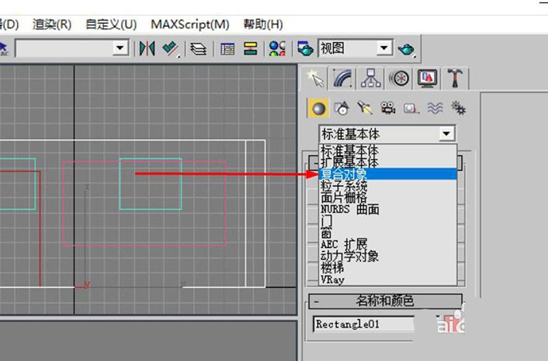 7、選擇第一個創(chuàng)建的圖形墻體,選擇復(fù)合對象,選擇布爾命令。