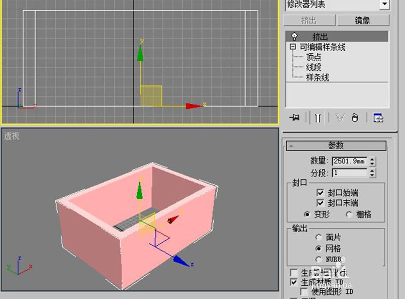 4、回到可編輯樣條線級別,選擇擠出命令擠出一定的高度。