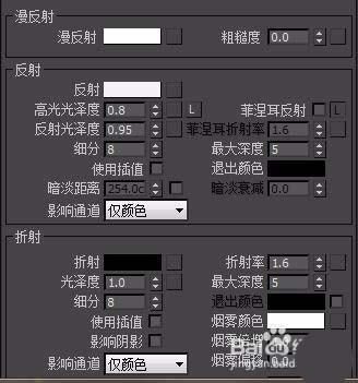 2、反射顏色與漫反射顏色類似。調(diào)整反射參數(shù)。