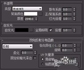 3、設(shè)置半透明類型及雙向反射分布函數(shù)。