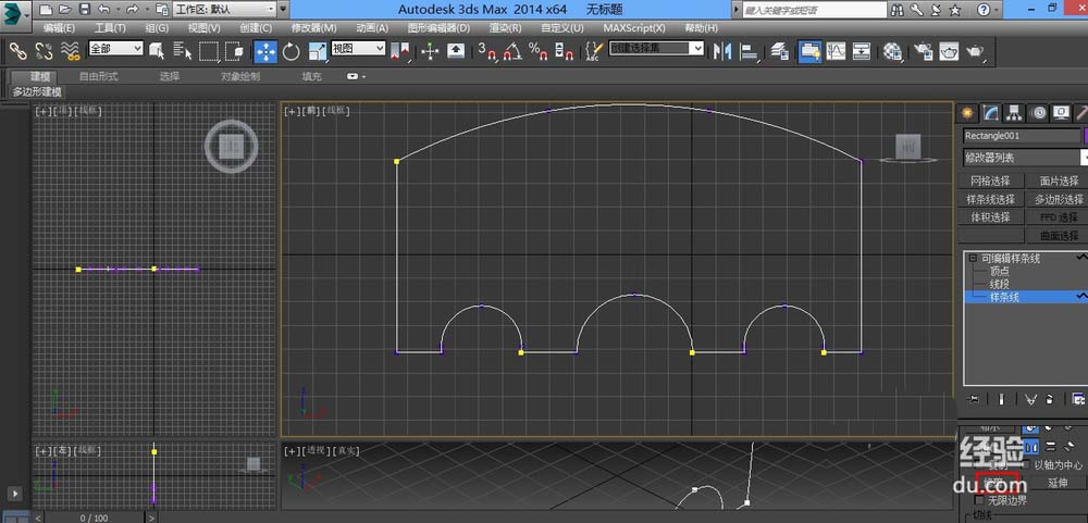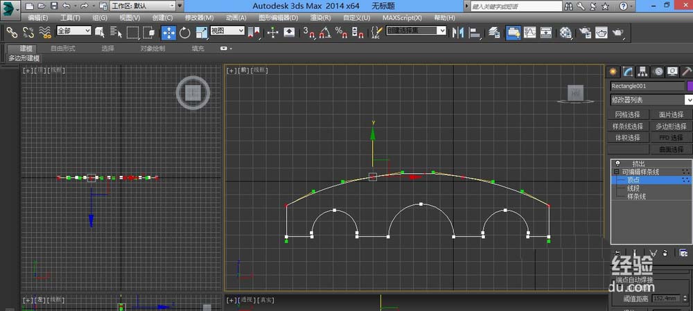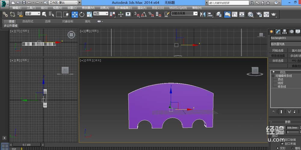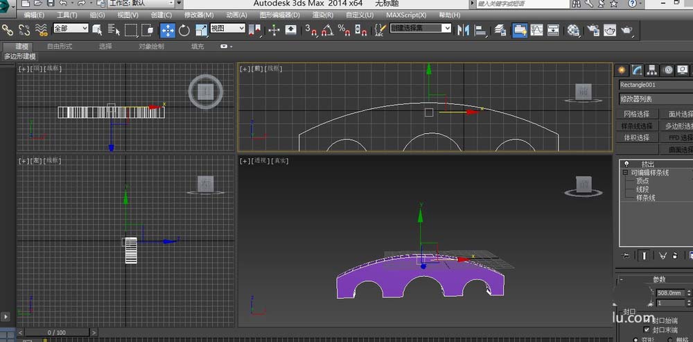 7、然后進(jìn)入樣條線,在修改器命令里面添加擠出命令